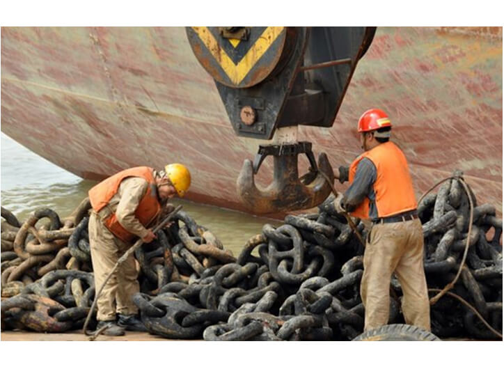 錨是一種鋼鐵制造的停船器具,沒有錨,船舶就無法停穩(wěn)。而對于鏈接船舶與錨的錨鏈,則更為重要,沒有錨鏈,錨就與船舶無法連接,錨的作用也就失去了意義。有時(shí),船舶與船舶之間的錨鏈會因?yàn)楦鞣N原因相互纏繞在一起。